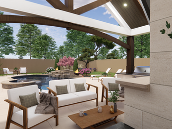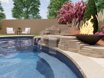 This backyard has everything from a pool, water fall, infinity edge spa, custom outdoor kitchen, pavilion & fire feature.